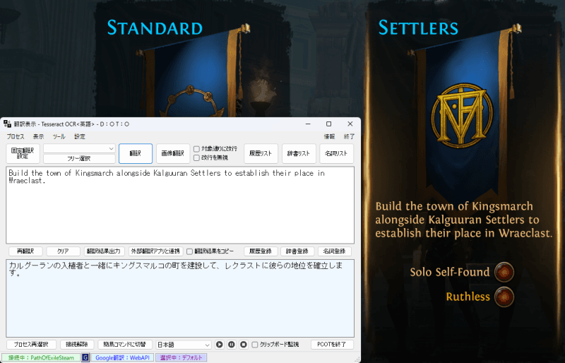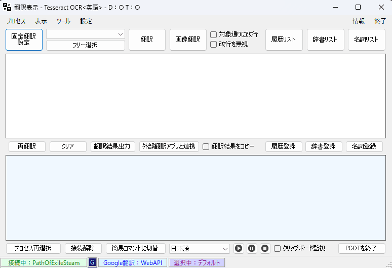 ※オンラインゲームでプロセス停止をすると規制対象(簡単に言うとBAN)になりかねないので、オンラインゲームの場合はスクショや録画から翻訳をするようにしましょう。