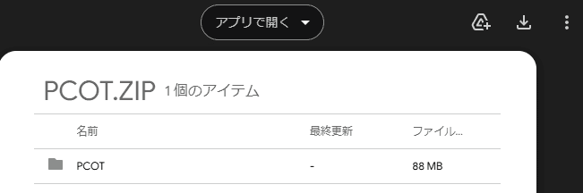 ダウンロードしたZipを展開すると以下のファイルが表示されます。