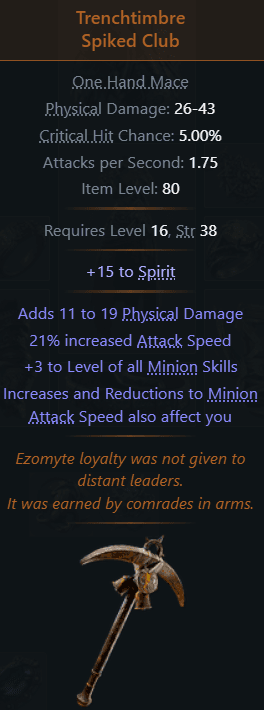 スピリットとミニオンスキルブーストがついてくる片手メイス