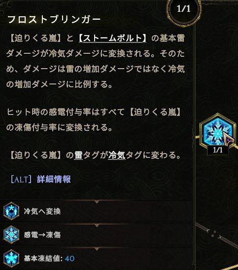 ・【迫りくる嵐】の属性変換で【ストームボルト】を冷気に変換し、