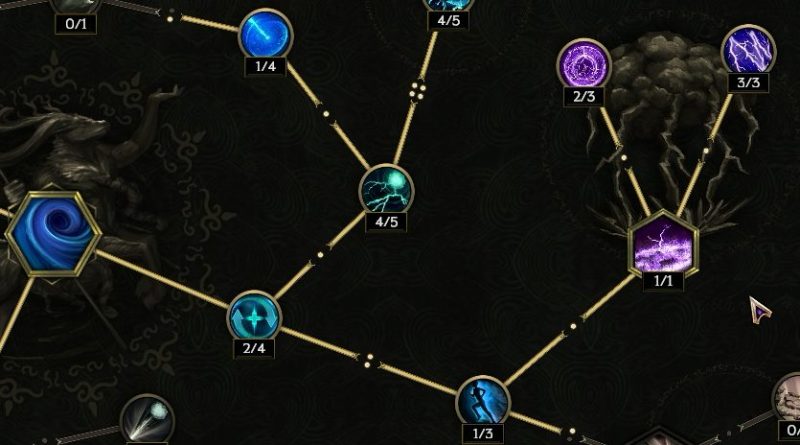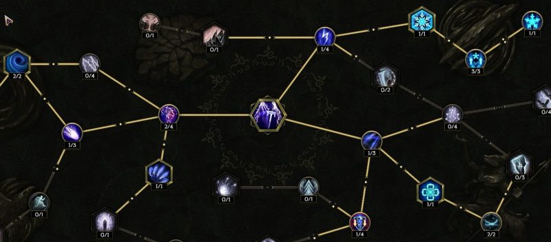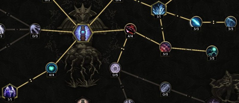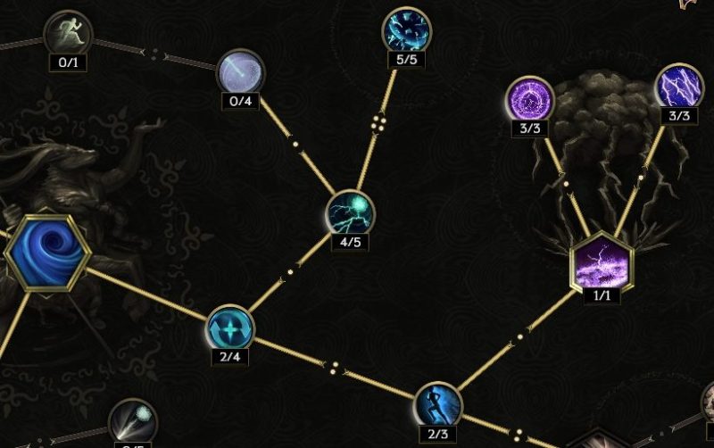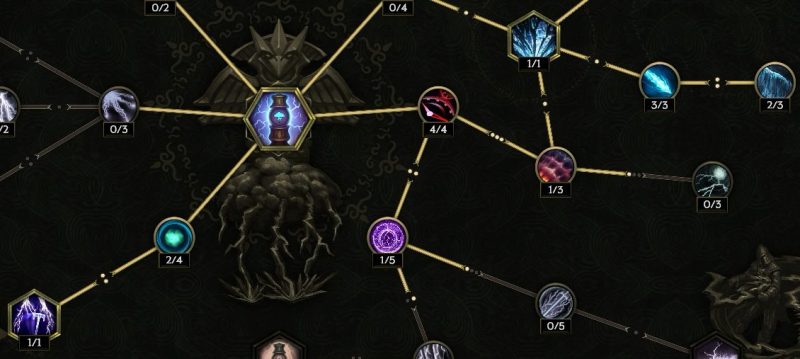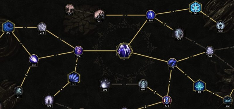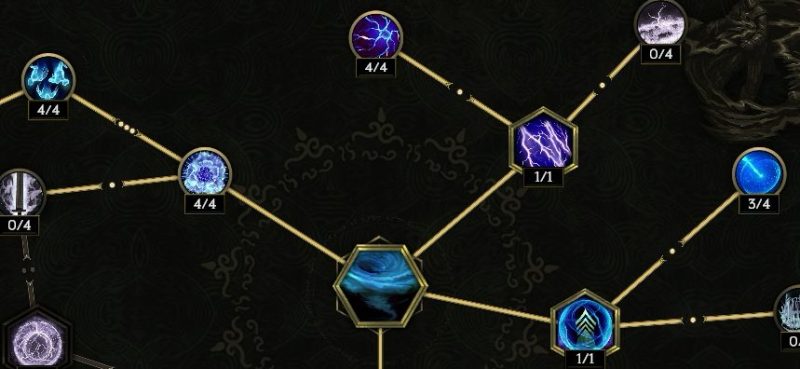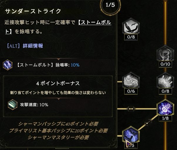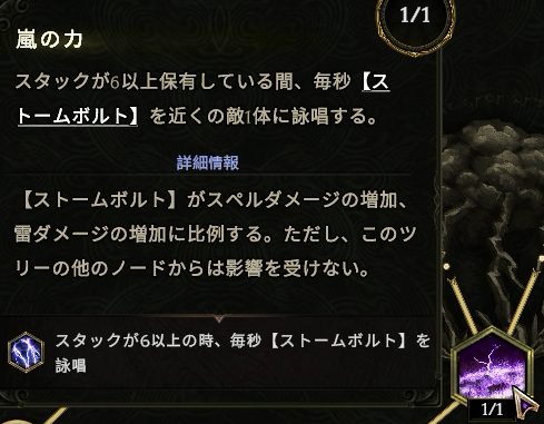 中央真上の【ストームボルト】感電付与率上昇に4ポイント振りたい。属性変換より右が要らないかもしれない