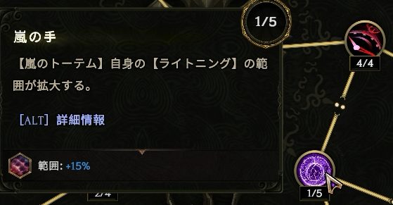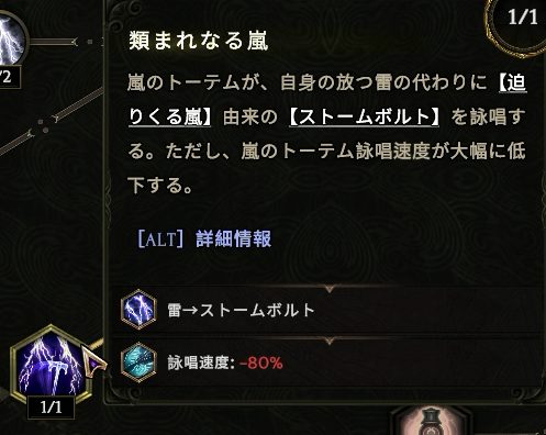 左下の【類まれなる嵐】でトーテムがストームボルトを発動するようになる