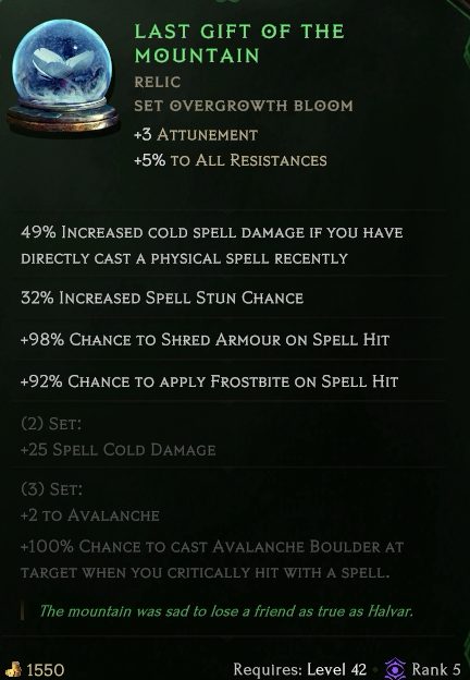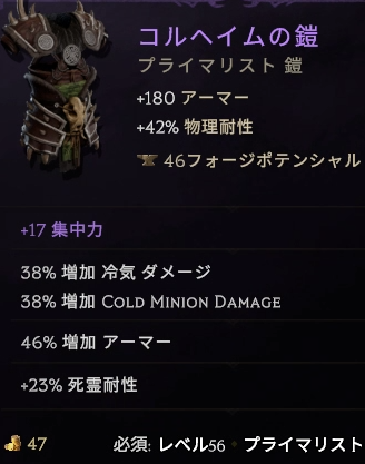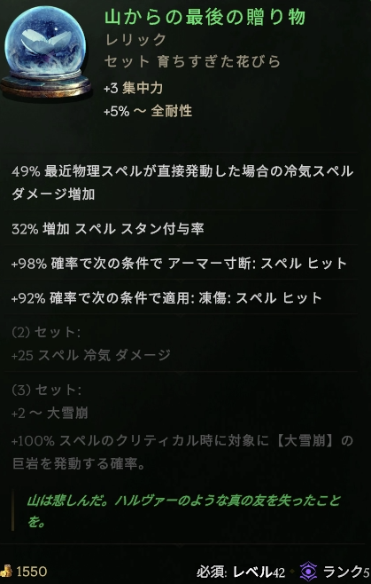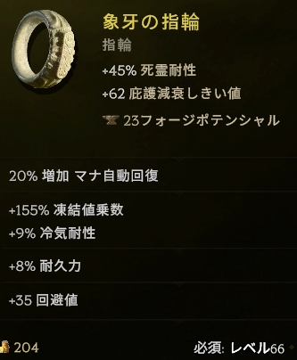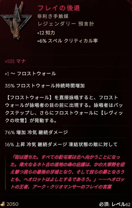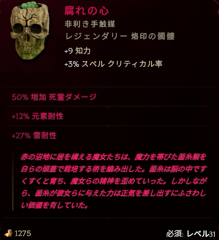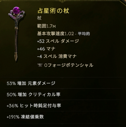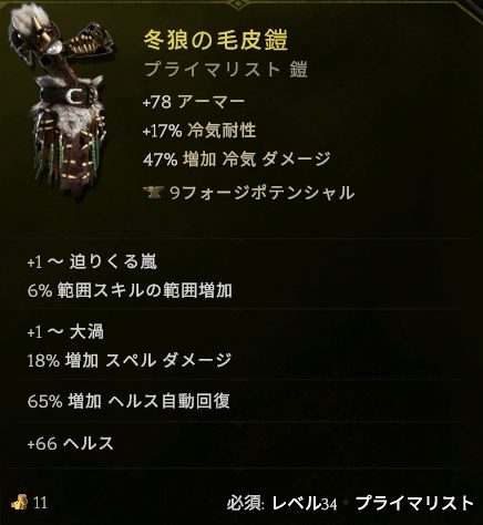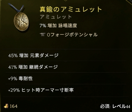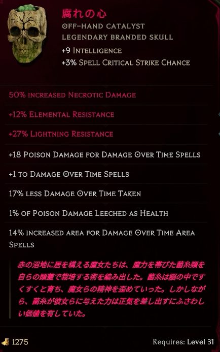 毒ビルド用っぽいオフハンドですが、スキルブーストとエリア拡大が重宝してます