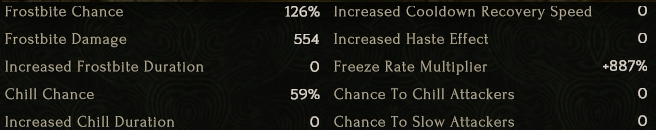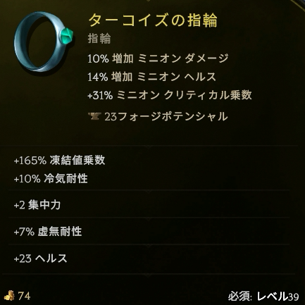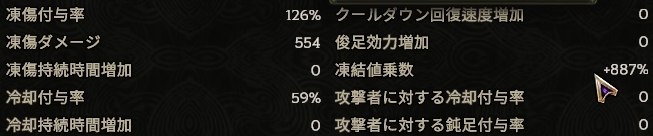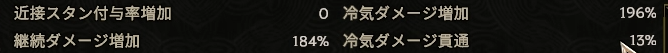 アイドルは凍結値乗数、凍傷付与率、冷気ダメージ、継続ダメージなど