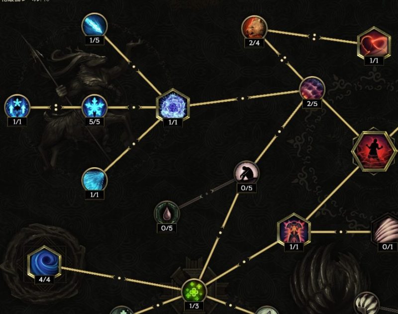・【迫りくる嵐】【大渦】【大竜巻】【嵐のトーテム召喚】のストームボルト発動ノードをとって、敵を【ストームボルト】で連打して凍らせて凍傷(氷Dot)で殺す